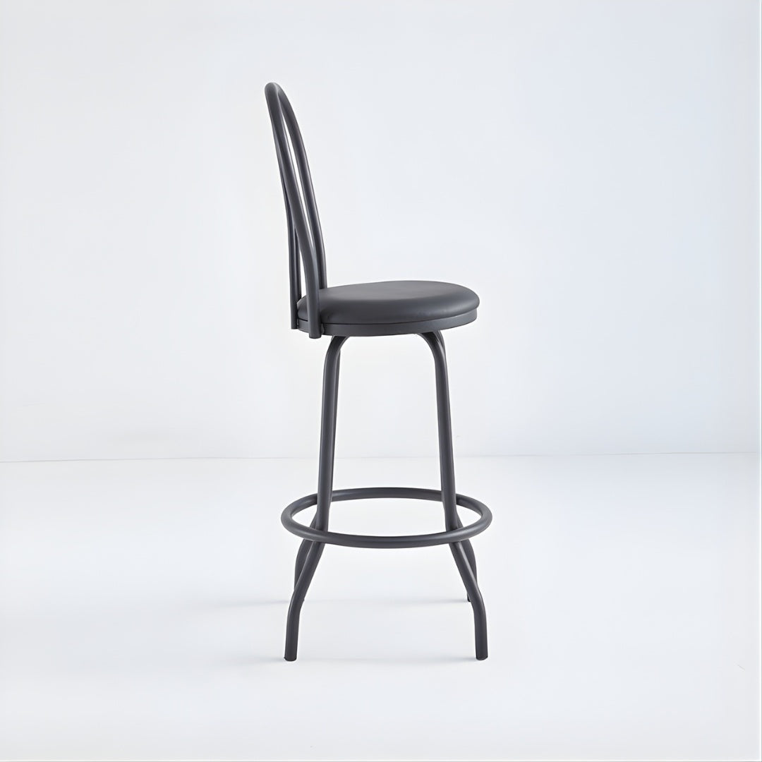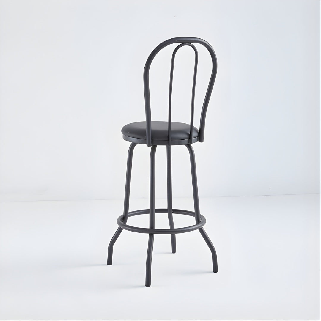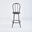 This classic bentwood-style bar stool combines timeless design with commercial durability, making it ideal for bars, cafés, restaurants, and hospitality settings. Featuring a curved backrest and a padded round seat, it offers comfortable support while maintaining a sleek, traditional silhouette. The sturdy metal frame provides excellent stability, while the integrated circular footrest enhances comfort during extended seating. Finished in black, this stool delivers a versatile, professional look that complements both modern and traditional interiors.