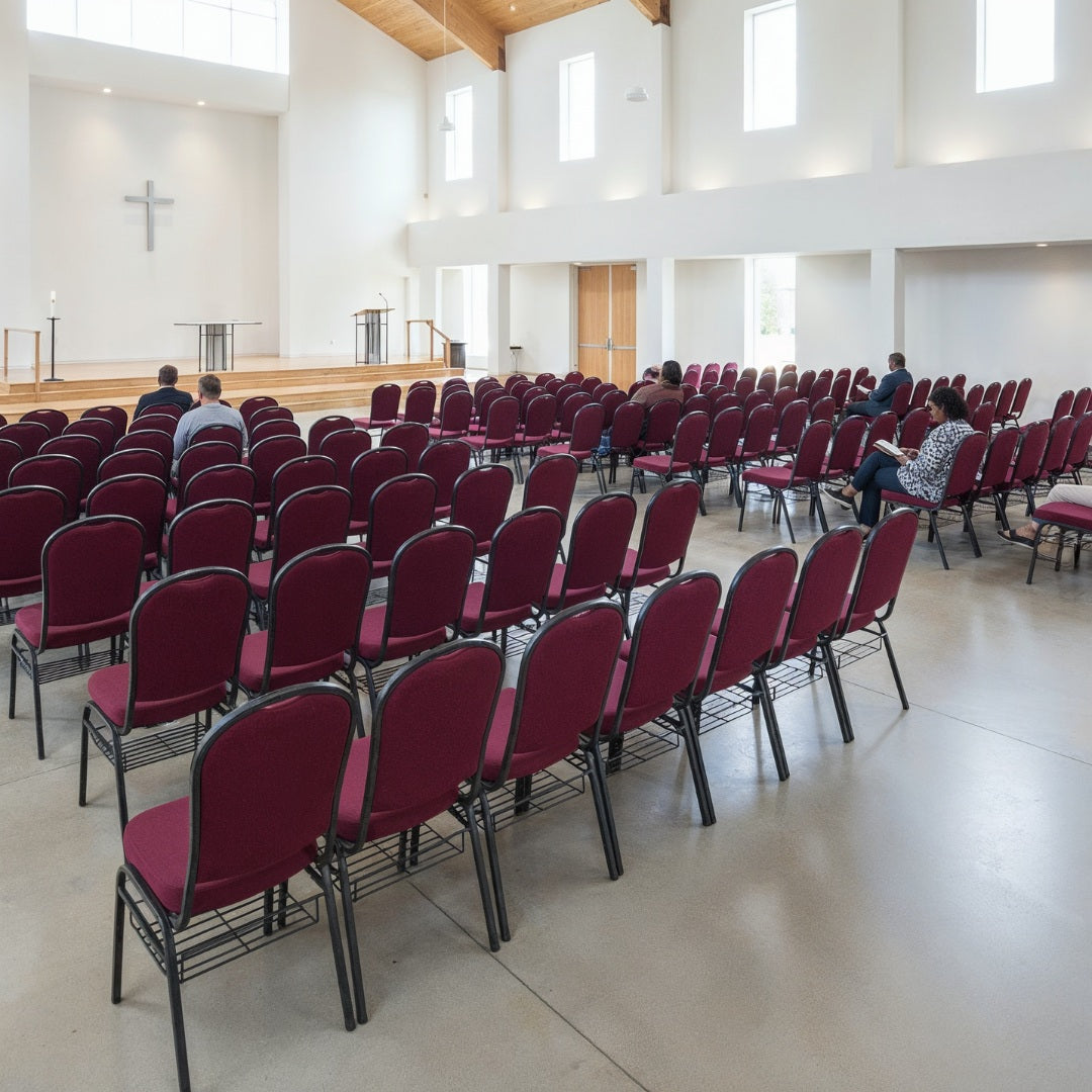 Our stacking chairs are designed for effortless setup and cleanup. Lightweight yet durable, they can be stacked high without strain and moved quickly with minimal effort. Whether you’re preparing a banquet hall, setting up a church service, or reorganizing a meeting room, you’ll save valuable time and energy. Their smart design makes transport and storage simple, so you can focus on the event—not the furniture.