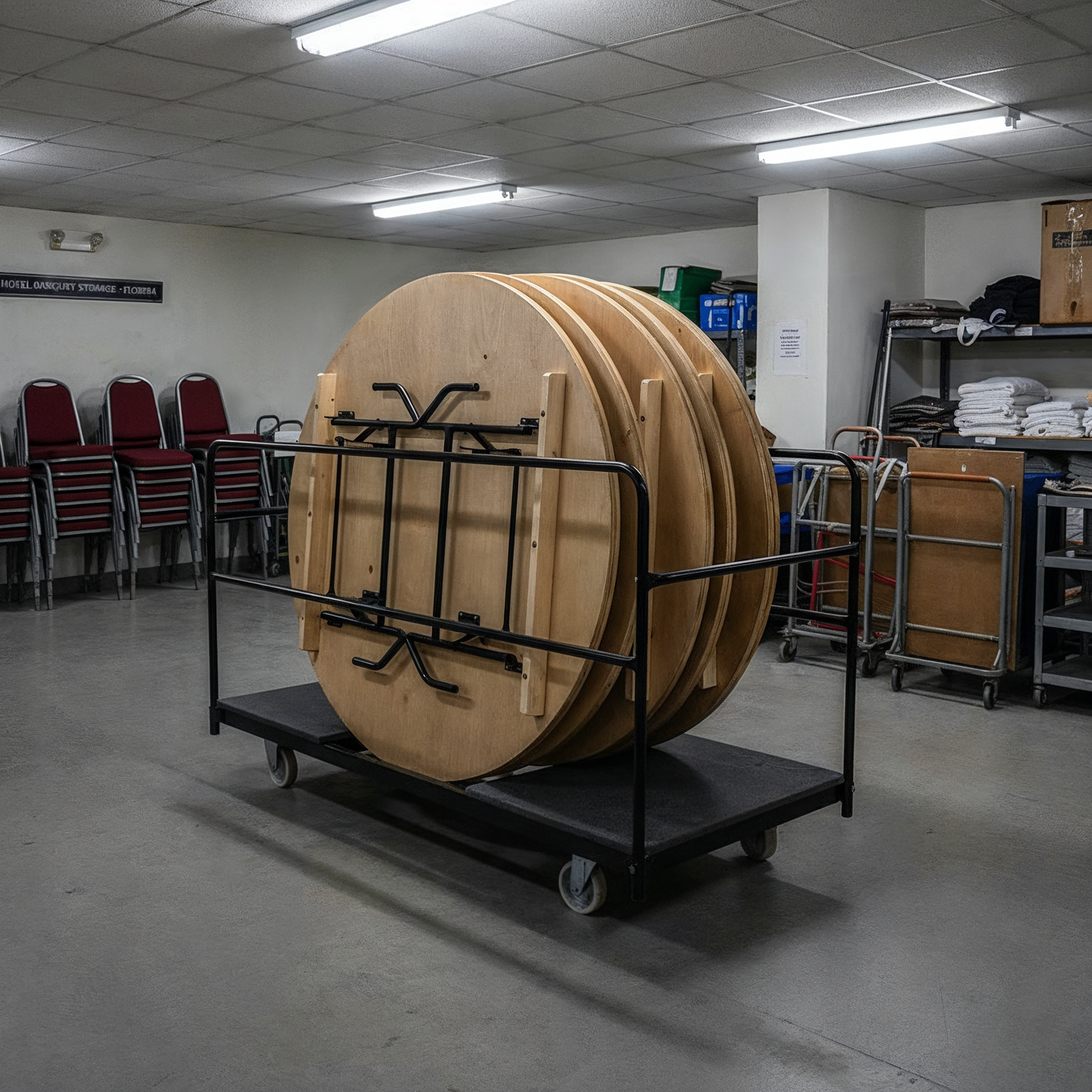 Our table dollies are designed to make transport and storage effortless. Built with heavy-duty steel frames and smooth-rolling casters, they can handle multiple tables at once while remaining stable and easy to maneuver. Whether you’re setting up for a banquet, breaking down after a conference, or organizing storage, these dollies save valuable time and reduce physical strain. Their practical design keeps your tables secure in transit, so you can focus on the event—not the heavy lifting.